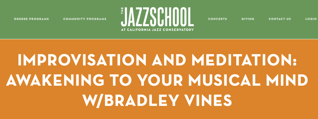 See the CJC website for details: https://jazzschool.cjc.edu/event/improvisation-and-meditation-awakening-to-your-musical-mind-w-bradley-vines/